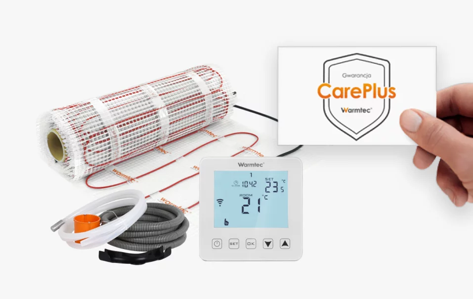 Przy zakupie zestawu ogrzewania podłogowego zapewniamy 30-letnią gwarancję CarePlus na matę grzewczą*. W ramach rozszerzonej gwarancji klient otrzymuje bezpłatną naprawę uszkodzonej maty w miejscu, gdzie została ona zamontowana – w domu, mieszkaniu lub innym lokalu.